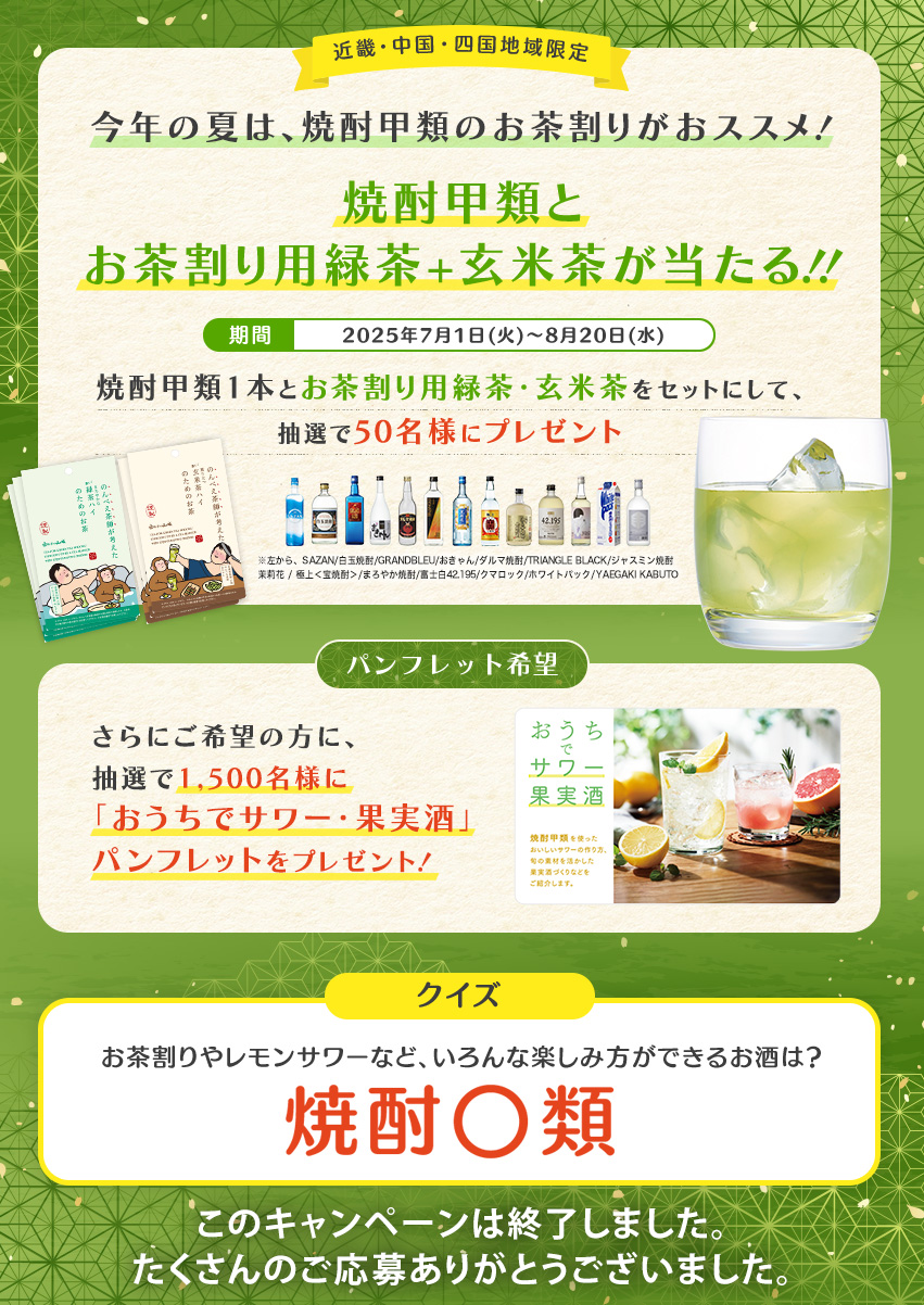 焼酎甲類とお茶割り用緑茶+玄米茶が当たる!!